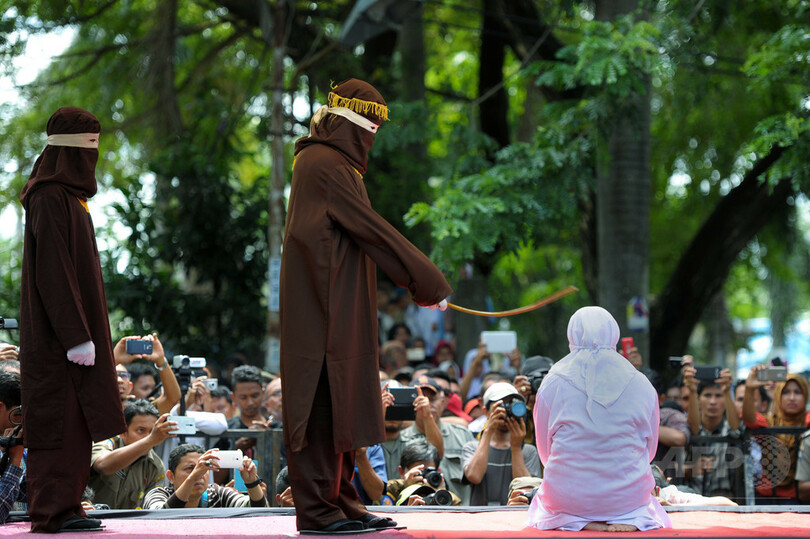 【11月28日 AFP】インドネシア・アチェ(Aceh)州の州都バンダアチェ(Banda Aceh)で28日、女性2人と男性3人に対する公開むち打ち刑が執行された。