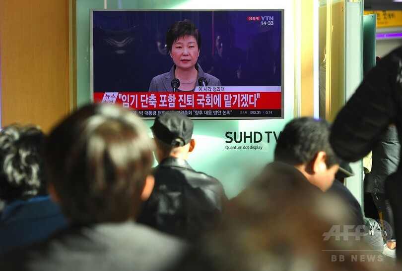 朴大統領は、テレビで生中継された談話で「任期短縮(の可能性)も含め、進退問題は国会の決定に委ねる」とし「政権の空白状態と国政の混乱を最小化するやり方で政権を移譲できる措置を国会で講じてもらえれば、私は大統領職から退く」と述べた。