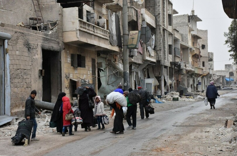一方、在英のNGO「シリア人権監視団(Syrian Observatory for Human Rights)」は同日、アレッポ東部から5万人が逃れ、少なくとも2万人が政府側の支配地域、3万人がクルド人勢力の支配地域に退避したと報告。さらに多くの人が、反体制派がなお支配する南側の地域へ移動したという。(c)AFP/Karam al-Masri with Sara Hussein in Beirut