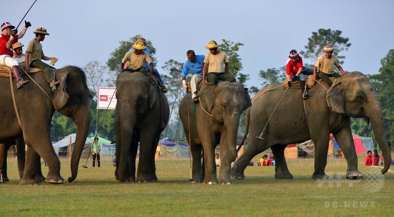 ゾウに乗ったポロ競技が人気 ネパールで国際大会