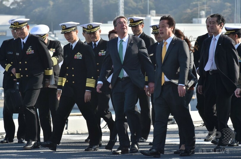 【12月6日 AFP】米国のアシュトン・カーター(Ashton Carter)国防長官が6日、米海軍横須賀基地(神奈川県横須賀市)を訪れ、海上自衛隊のヘリコプター搭載型護衛艦「いずも(Izumo)」を視察した。カーター氏は7日に稲田朋美(Tomomi Inada)防衛相と会談する予定。(c)AFP