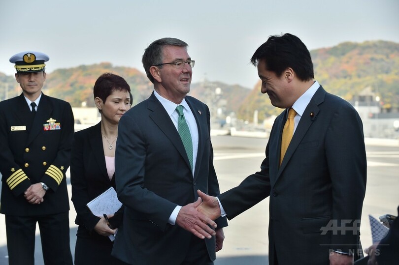 【12月6日 AFP】米国のアシュトン・カーター(Ashton Carter)国防長官が6日、米海軍横須賀基地(神奈川県横須賀市)を訪れ、海上自衛隊のヘリコプター搭載型護衛艦「いずも(Izumo)」を視察した。カーター氏は7日に稲田朋美(Tomomi Inada)防衛相と会談する予定。(c)AFP