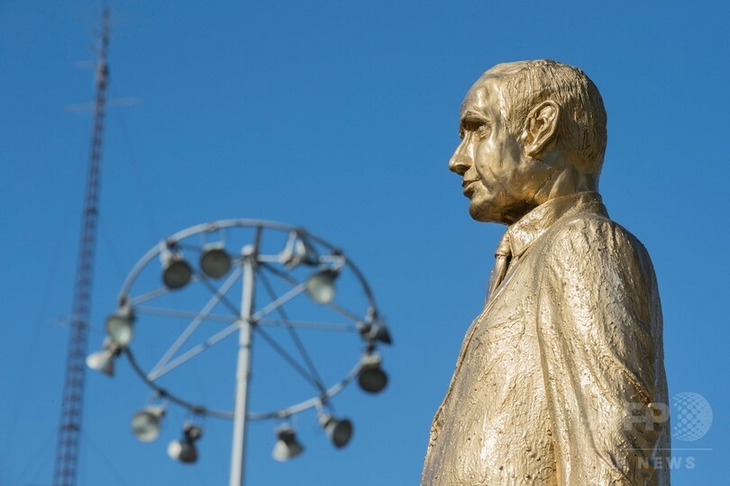一方ソーシャルメディア上には、この像について、米主導の有志連合によるイラク進攻後、2003年に引き倒された故サダム・フセイン(Saddam Hussein)元大統領の像を連想させるとからかう書き込みもみられた。(c)AFP
