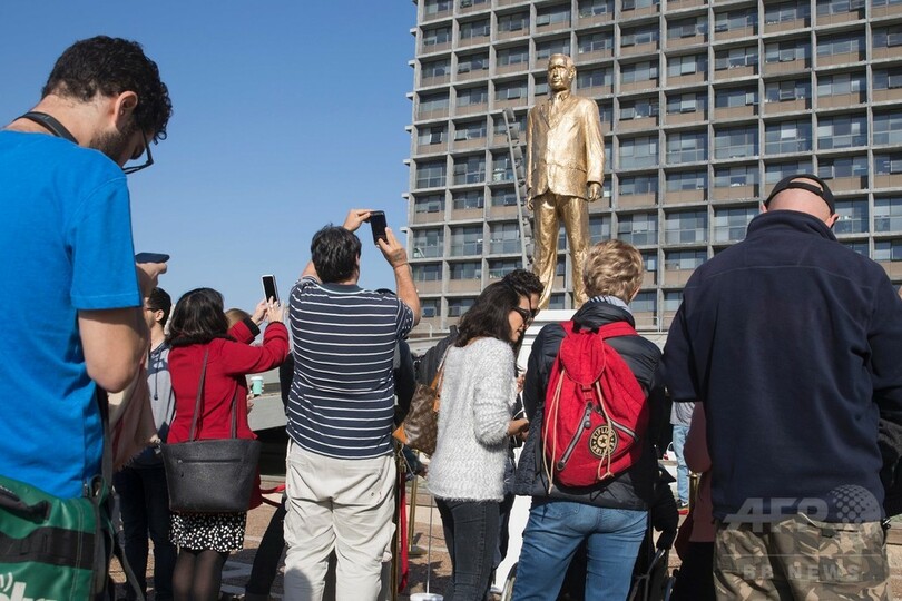 【12月7日 AFP】イスラエル・テルアビブ(Tel Aviv)の市庁舎前にあるラビン広場(Rabin Square)に6日、ベンヤミン・ネタニヤフ(Benjamin Netanyahu)首相の金色の像が出現した。高さは4メートルあり、6日未明にかけて許可なく設置され、数時間後に撤去された。