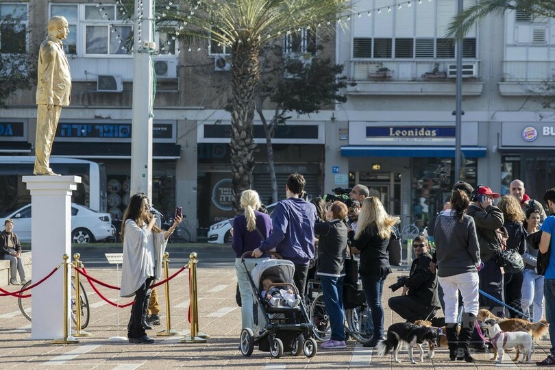 【12月7日 AFP】イスラエル・テルアビブ(Tel Aviv)の市庁舎前にあるラビン広場(Rabin Square)に6日、ベンヤミン・ネタニヤフ(Benjamin Netanyahu)首相の金色の像が出現した。高さは4メートルあり、6日未明にかけて許可なく設置され、数時間後に撤去された。