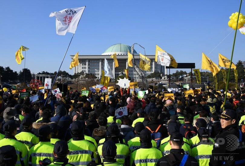 【12月9日 AFP】(更新、写真追加)韓国国会は9日、朴槿恵(パク・クネ、Park Geun-Hye)大統領の弾劾訴追案の採決を行い、賛成234票、反対56票で可決した。これに伴い、朴氏の大統領権限は停止された。憲法裁判所(Constitutional Court)が弾劾を認め朴氏を大統領職から罷免するかどうかを180日以内に判断するまで、大統領の職務は首相が代行する。