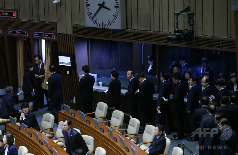 【12月9日 AFP】(更新、写真追加)韓国国会は9日、朴槿恵(パク・クネ、Park Geun-Hye)大統領の弾劾訴追案の採決を行い、賛成234票、反対56票で可決した。これに伴い、朴氏の大統領権限は停止された。憲法裁判所(Constitutional Court)が弾劾を認め朴氏を大統領職から罷免するかどうかを180日以内に判断するまで、大統領の職務は首相が代行する。