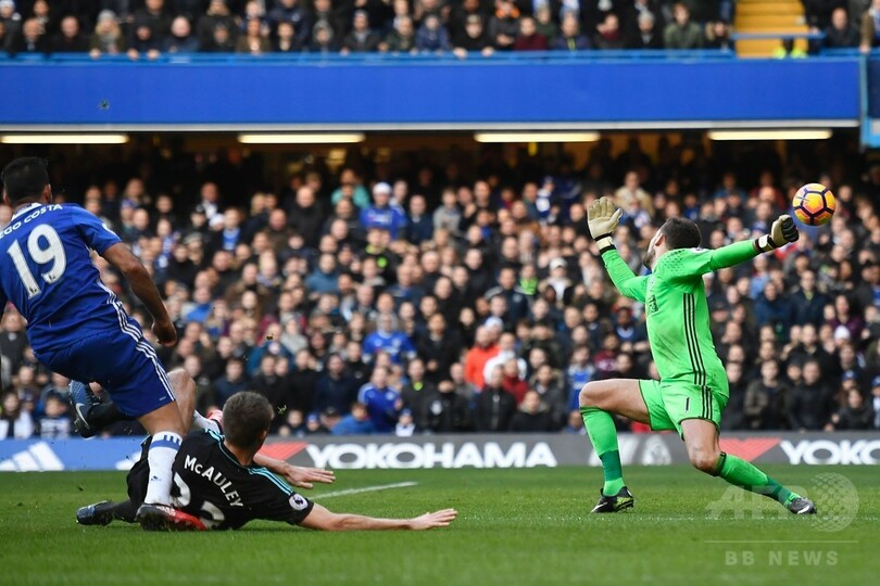 アントニオ・コンテ(Antonio Conte)監督率いるチェルシーは、前日の試合でアーセナル(Arsenal)が勝利したことで、首位の座を暫定的に奪われていたが、試合終盤のスペイン代表ジエゴ・コスタ(Diego da Silva Costa)のゴールで、ガナーズ(Gunners、アーセナルの愛称)との勝ち点差を再び3とした。