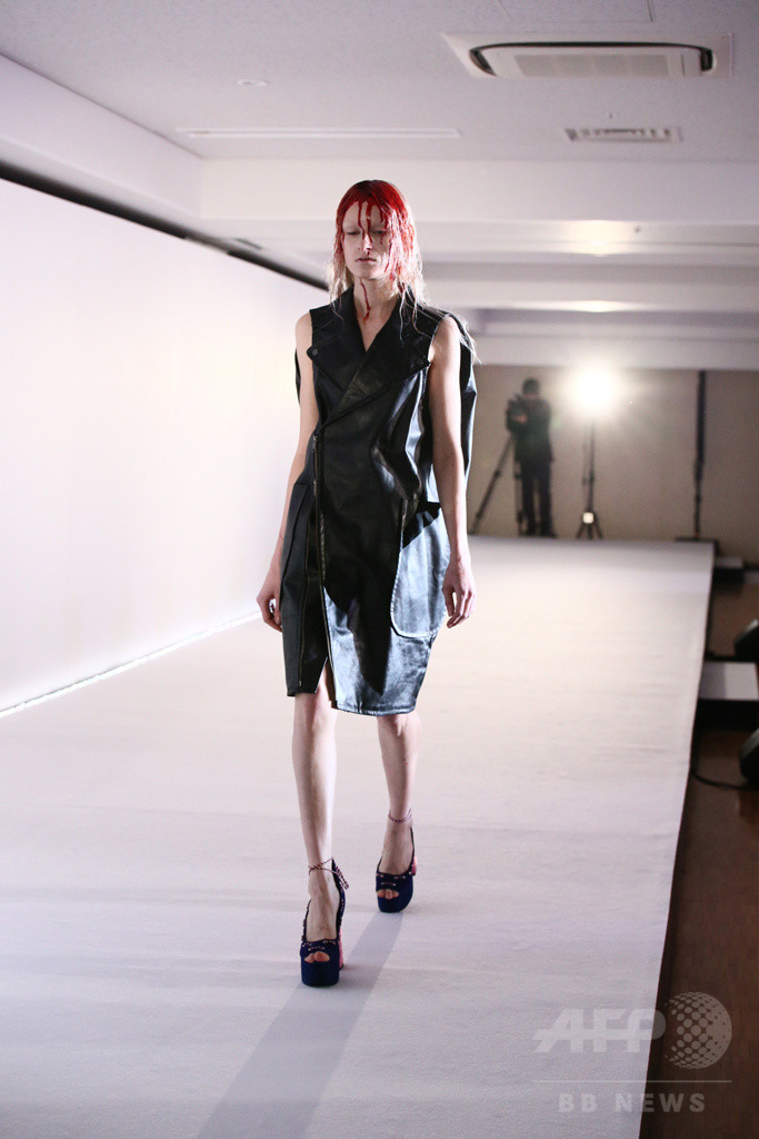 デザイナーの坂部三樹郎と、老舗タンナーである「ニッピ・フジタ(Nippi Fujita)」、そして皮加工・革漉きの専門業者である「墨田革漉工業」のコラボレーションとして発表された同コレクション。ホラーやオカルトをテーマに、赤い血のしたたるメイクなどをまとったモデルたちが計20ルックを披露した。化学繊維では表現できない、レザーが持つ生命力や存在感を反映させたと坂部は語る。