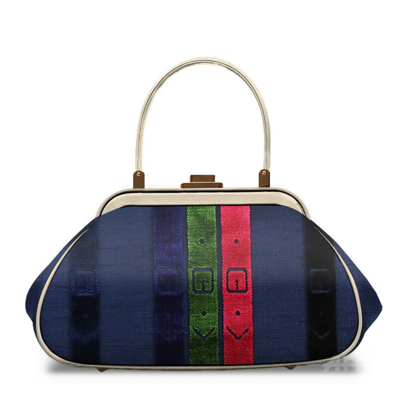 「ロベルタ ディ カメリーノ」は、1945年にジュリアーナ・カメリーノ(Giuliana Camerino)が設立したブランド。「R」のシンボルマークと赤・緑・紺をメインとした大胆な配色を特徴とし、モナコ王妃グレース・ケリー(Grace Kelly)が愛したアイコンバッグ「バゴンギ」や、だまし絵を用いたバッグやパネルドレスなどで知られている。