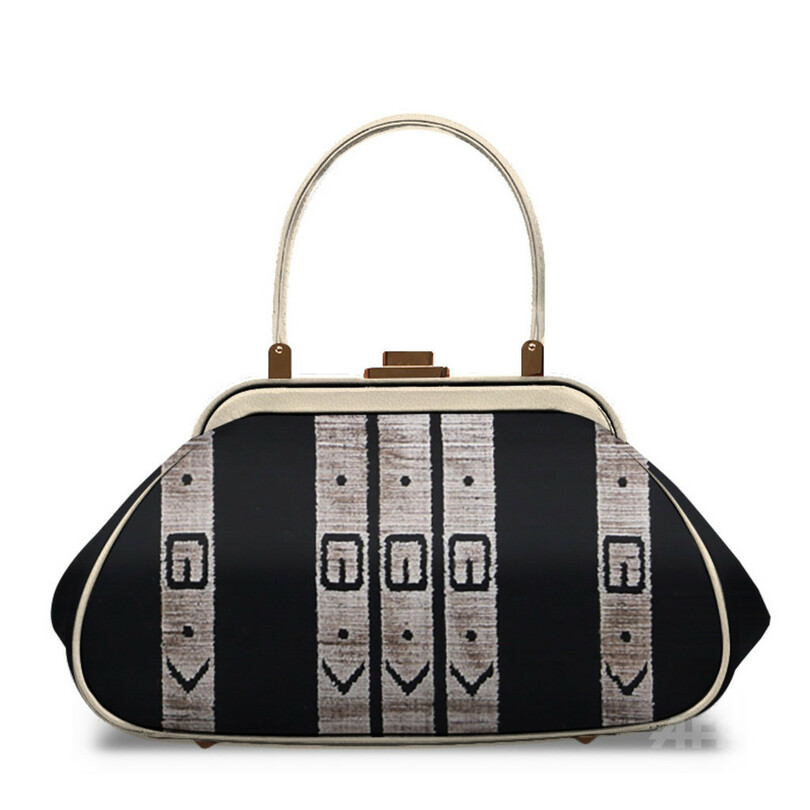カスタムオーダーに使うベルベットは、創業者のジュリアーナ・カメリーノが自由な発想のバッグを作るために思いついた生地で、1950年代からイタリア・ヴェネツィアで織られ、大切に保管されていたもの。留め金やベルトなどを飾りとして織り込むトロンプルイユ(だまし絵)の技法を使っており、少量しか残っていない希少な生地もある。