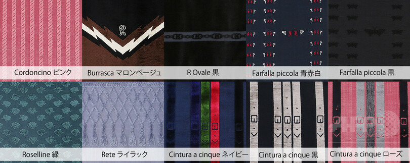 カスタムオーダーに使うベルベットは、創業者のジュリアーナ・カメリーノが自由な発想のバッグを作るために思いついた生地で、1950年代からイタリア・ヴェネツィアで織られ、大切に保管されていたもの。留め金やベルトなどを飾りとして織り込むトロンプルイユ(だまし絵)の技法を使っており、少量しか残っていない希少な生地もある。