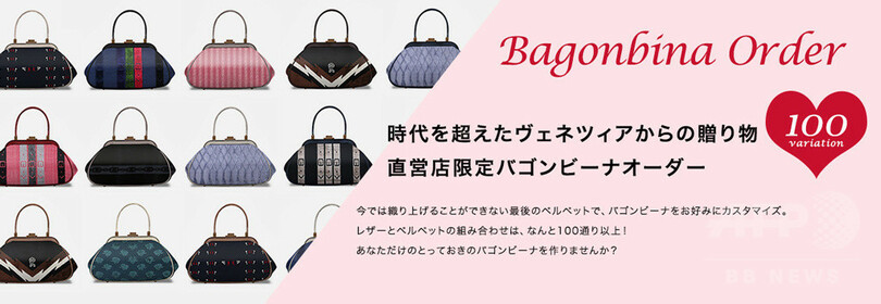 カスタムオーダーできるバッグは、今年デビューしたばかりの「バゴンビーナ」。1948年から発売されているアイコン的なバッグ「バゴンギ」のフォルムを受け継いだ、妹的存在のアイテムだ。好みのベルベット生地を選び、約3ヶ月かけて日本の熟練した職人が作り上げる。ベルベットは常時10種類から、枠とハンドル・パイピング部分の革の色は5~9種類から選ぶことができ、公式ウェブショップでは100通り以上のシミュレーションが可能。お気に入りのカスタマイズをSNSでシェアして楽しんだり、クリスマスプレゼントにリクエストしたりすることも可能。