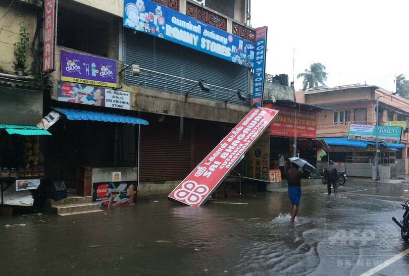 【12月13日 AFP】(写真追加)インド南部タミルナド(Tamil Nadu)州の州都チェンナイ(Chennai)を12日、サイクロン「バーダー(Vardah)」が直撃し、これまでに少なくとも10人の死亡が確認された。