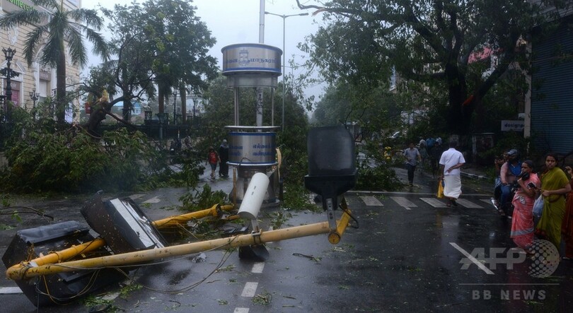 13日の当局発表によると、現地では最大風速39メートルの暴風が吹き、倒れた樹木の下敷きになった多くの家屋が倒壊。またインド南部の広い地域で電力供給が途絶え、停電が発生している。