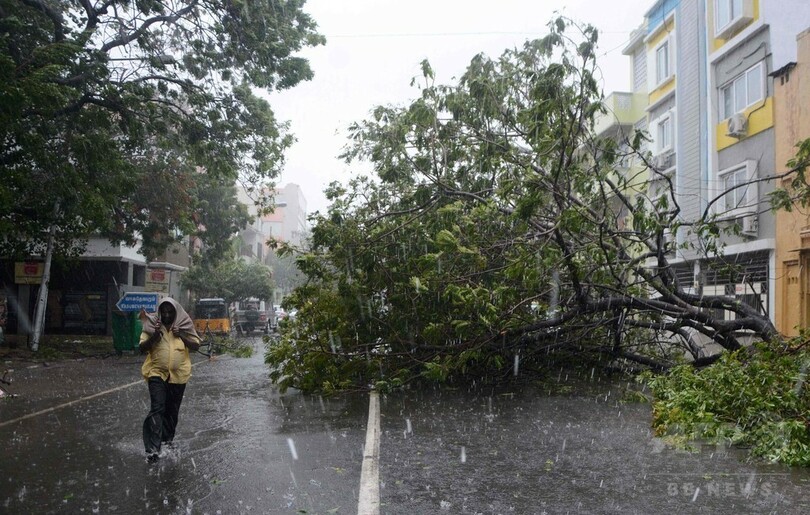 13日の当局発表によると、現地では最大風速39メートルの暴風が吹き、倒れた樹木の下敷きになった多くの家屋が倒壊。またインド南部の広い地域で電力供給が途絶え、停電が発生している。