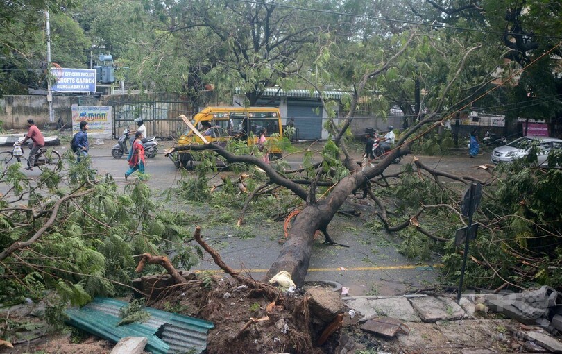 13日の当局発表によると、現地では最大風速39メートルの暴風が吹き、倒れた樹木の下敷きになった多くの家屋が倒壊。またインド南部の広い地域で電力供給が途絶え、停電が発生している。