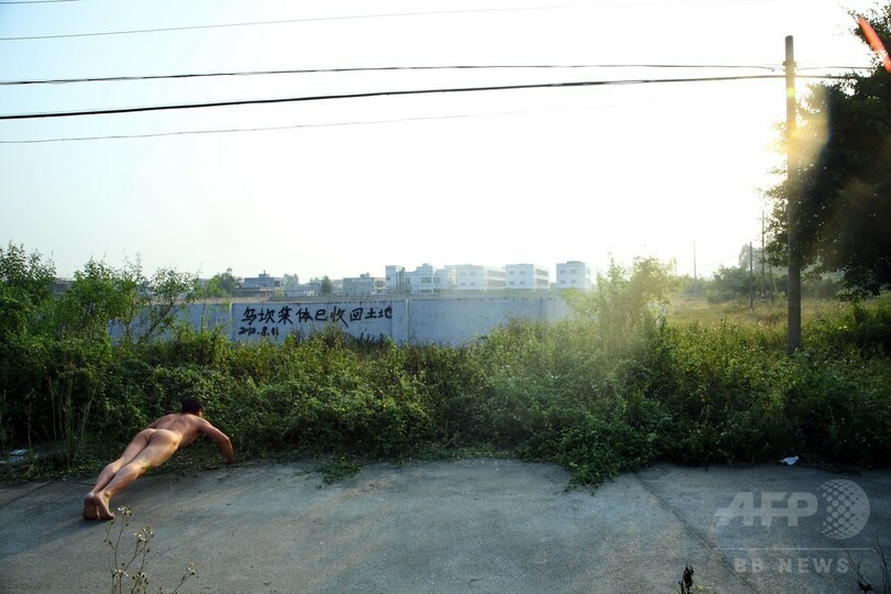 【12月19日 AFP】中国のアーティスト、区志航(Ou Zhihang)さん(46)は公の場でカメラをセットすると、あわただしく服を脱ぎ、尻をさらしたまま1回だけ腕立て伏せをする――作品の完成だ。