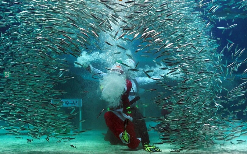 【12月20日 AFP】韓国・ソウル(Seoul)にある水族館「コエックス・アクアリウム(Coex Aquarium)」で17日、サンタクロースの衣装を着たダイバーが水槽の中で魚とともにクリスマスの特別パフォーマンスを行った。