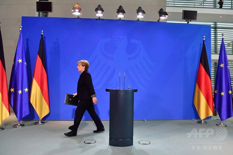 亡命者受け入れに積極的な政策にもかかわらずメルケル首相の支持率は依然高いが、来年9月の実施が見込まれる総選挙を前に、右派ポピュリスト政党の「ドイツのための選択肢(Alternative for Germany、AfD)」に支持者の一部を侵食されている。(c)AFP
