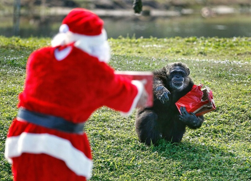 チンパンジーたちにもクリスマスプレゼント 米動物園
