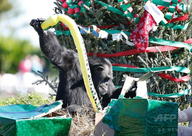 チンパンジーたちにもクリスマスプレゼント 米動物園
