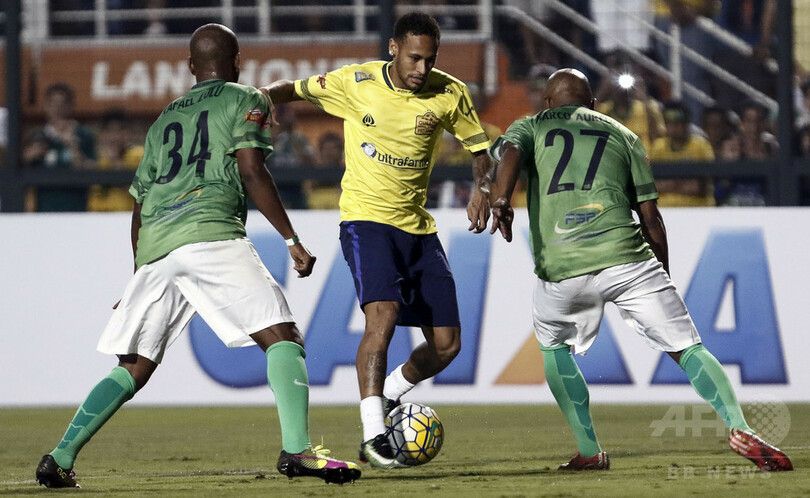 2016年限りでフォーミュラワン(F1、F1世界選手権)から現役を表明しているフェリペ・マッサ(Felipe Massa)が得点を決めた今回の試合の収益金は、ネイマールの慈善基金を通して、11月28日に発生した航空機墜落事故で犠牲になったシャペコエンセ(Chapecoense)に寄付されるという。(c)AFP