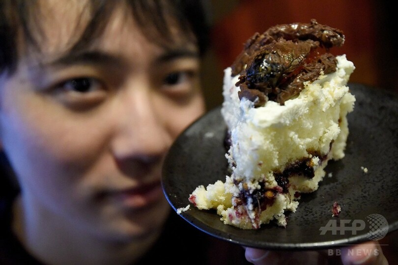 【12月25日 AFP】都内で24日、昆虫食を楽しむグループによるクリスマスイベントが開催された。30人以上の参加者らがチョコレートでコーティングされたセミやイモムシが載ったクリスマスケーキや、揚げたバッタがトッピングされているカナッペに舌鼓を打った。(c)AFP