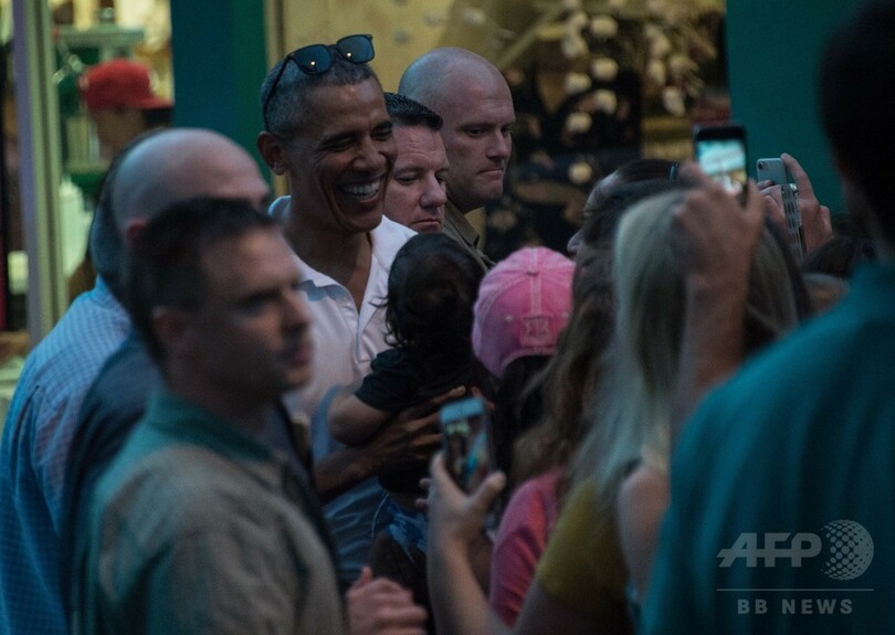 無事に密室から脱出したオバマ親子はその後、地元名物のかき氷に舌鼓を打ちつつ、予想外の訪問に驚いた人々と握手を交わしていた。(c)AFP