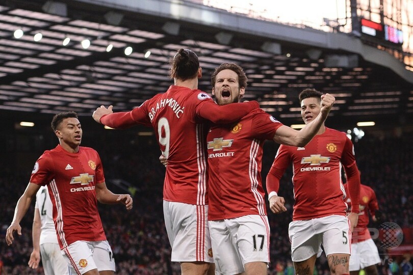 練習中に負傷したウェイン・ルーニー(Wayne Rooney)を欠いたユナイテッドだったが、リーグ戦4連勝を飾るとともに公式戦では11戦無敗を記録しており、順位は6位と変わらないものの、28日にサウサンプトン(Southampton FC)戦を控える5位トッテナム・ホットスパー(Tottenham Hotspur)と勝ち点33で並んでいる。(c)AFP