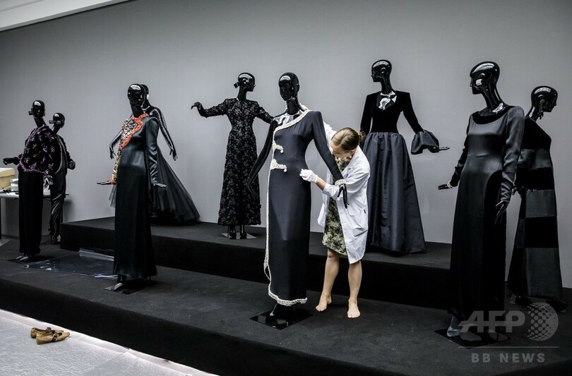 回顧展には、ジバンシィが自ら厳選した約100着の服に加え、ジュエリーや小物、写真や映画のスチールなども展示されている。(c)AFP/ Sophie MIGNON