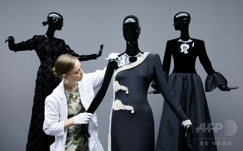 回顧展には、ジバンシィが自ら厳選した約100着の服に加え、ジュエリーや小物、写真や映画のスチールなども展示されている。(c)AFP/ Sophie MIGNON