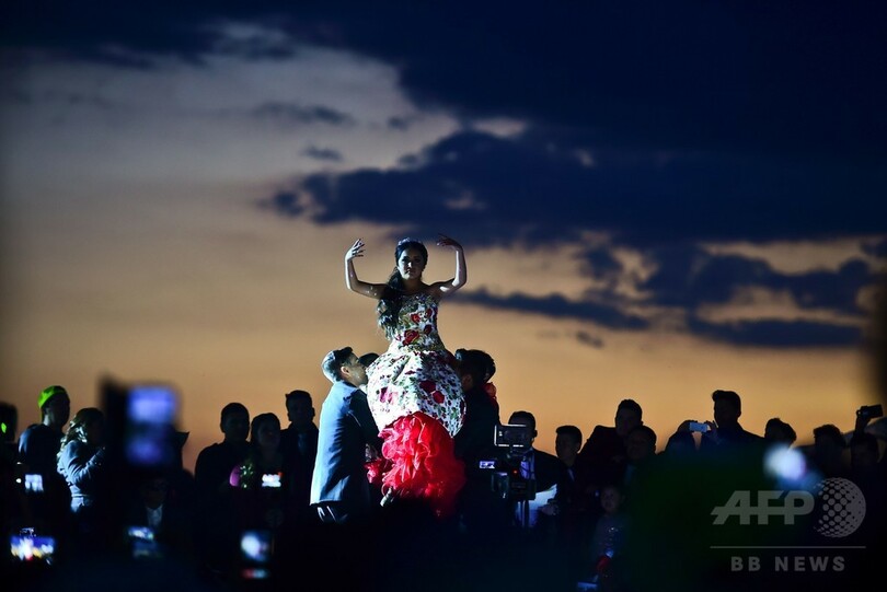 パーティーが開かれたのは、サンルイスポトシ(San Luis Potosi)州のビジャデグアダルーペ(Villa de Guadalupe)の広大な原っぱ。中央には巨大な屋外ステージが用意され、花柄のガウンに真っ赤なスカートをまとったルビさんは、さまざまな年齢の約1万人の参加者と一緒に花火やコンサート、ダンスを楽しみ夜を明かした。