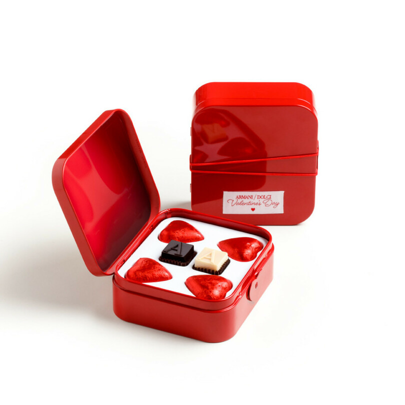 「アルマーニ/ドルチ」はトータル ライフ スタイルを提案する「アルマーニ」のブランドの一つとして誕生。今回発売されるスペシャル仕様の真っ赤なメタルボックスには、バレンタイン限定フレーバーのジンジャービターチョコレートが登場。赤のラッピングのハートシェイプが4ピース、そして「アルマーニ」の頭文字“A”がレリーフされたプラリネ2ピースを詰め合わせた。