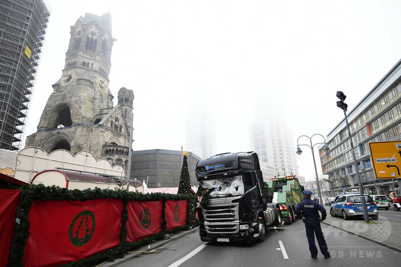 また同報道官は犯行に使用された40トントラックについて、衝撃が検知された際に起動する自動ブレーキ機能が作動したために70~80メートル先で停止し、「さらに悪い事態が回避」されたとみられると明かした。(c)AFP/Frank ZELLER