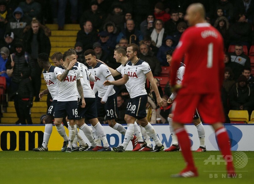 【1月2日 AFP】16-17イングランド・プレミアリーグは1日、第19節の試合が行われ、トッテナム・ホットスパー(Tottenham Hotspur)はハリー・ケイン(Harry Kane)とデレ・アリ(Dele Alli)がそれぞれ2得点を記録し、故障者が続出しているワトフォード(Watford FC)に4-1で快勝した。