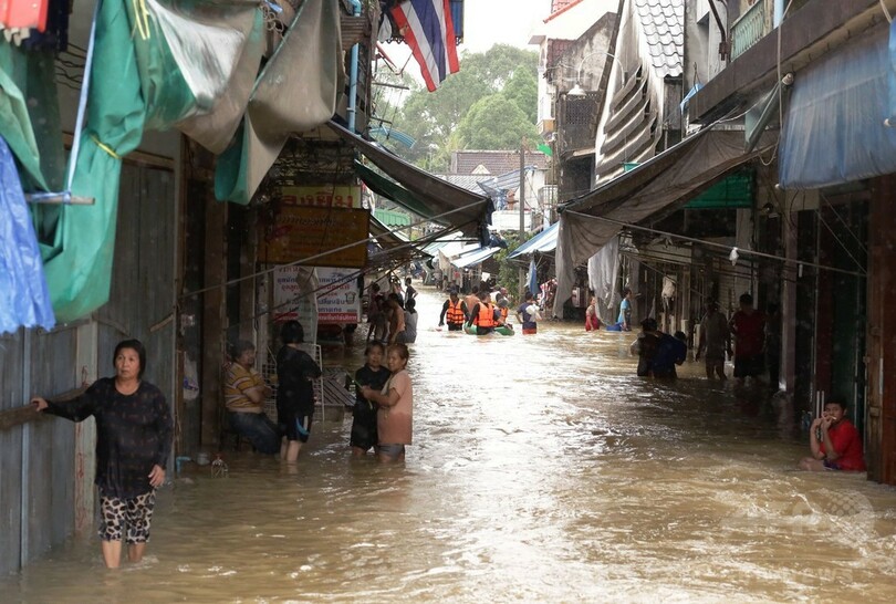 タイ気象当局は、豪雨はまだ2日間は続くとしており、さらなる洪水への警戒を呼び掛けている。(c)AFP