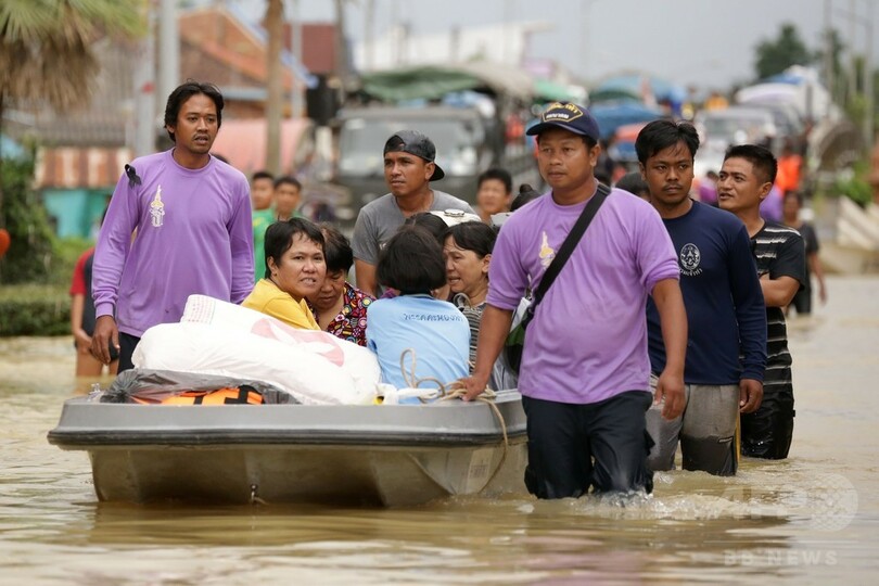 タイ気象当局は、豪雨はまだ2日間は続くとしており、さらなる洪水への警戒を呼び掛けている。(c)AFP