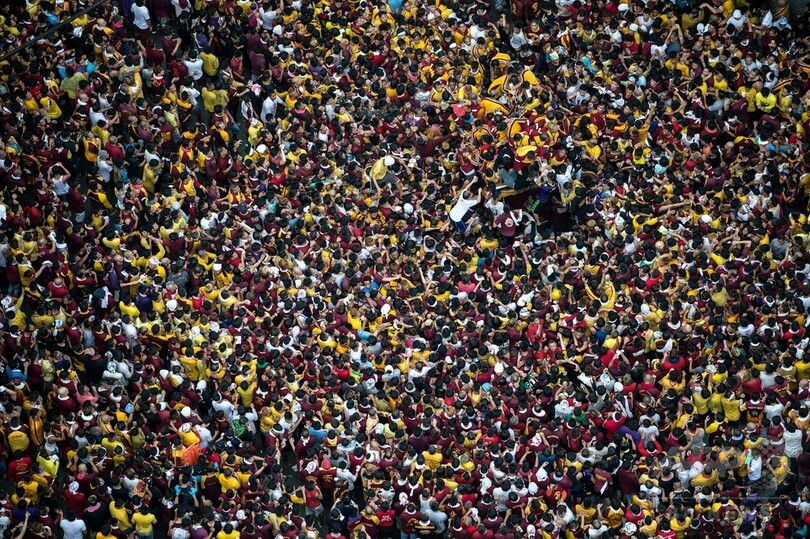 【1月11日 AFP】フィリピンの首都マニラ(Manila)で毎年開催されているキリスト教カトリック教徒の祭りとしては世界最大級の「ブラックナザレ(Black Nazarene)祭」。同市内のキアポ教会 (Quiapo Church)に10日、「ブラックナザレ」と呼ばれる等身大の黒いキリスト像が到着すると、像に触れて奇跡にあやかろうとする信者たちが殺到し、警察官らが規制に追われるほどの大混雑となった。(c)AFP