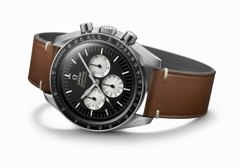 デザインのベースとなったのは、1978 年にアメリカ航空宇宙局(NASA)用に作られた「スピードマスター “アラスカ プロジェクト Ⅲ” モデル」。マットなブラッシュ仕上げのステンレススティール製ケースと、大きめの数字を放射状に配置した“ラディアル サブダイアル”を再現した。さらに、ダイアルのデザインには1966 年に初登場した「逆パンダ」ダイアルを採用し、ダイアル上にはヴィンテージのオメガロゴを配した。
