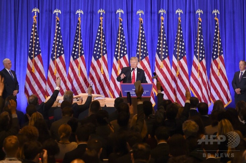 【1月12日 AFP】(更新)ドナルド・トランプ(Donald Trump)次期米大統領は11日、当選後初となる記者会見をニューヨーク(New York)で開き、ロシア政府が昨年の米大統領選を妨害したとみられることを初めて認めた。一方で、ロシアが同氏の評価をおとしめるような情報を入手していたとする文書について、反対勢力による「捏造(ねつぞう)」だと一蹴した。