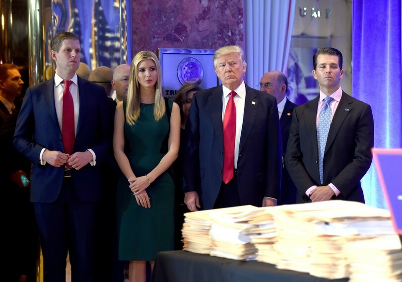 経済面では、「われわれは雇用を創出する。私は神が創造した最大の雇用創出者になる」と宣言。自身が経営する巨大事業について、長男の長男ドナルド・ジュニア(Donald Trump Jr)氏と次男のエリック(Eric Trump)氏に経営権を「完全」移譲したと説明し、「息子らは私と(事業について)相談はしない」と述べた。(c)AFP
