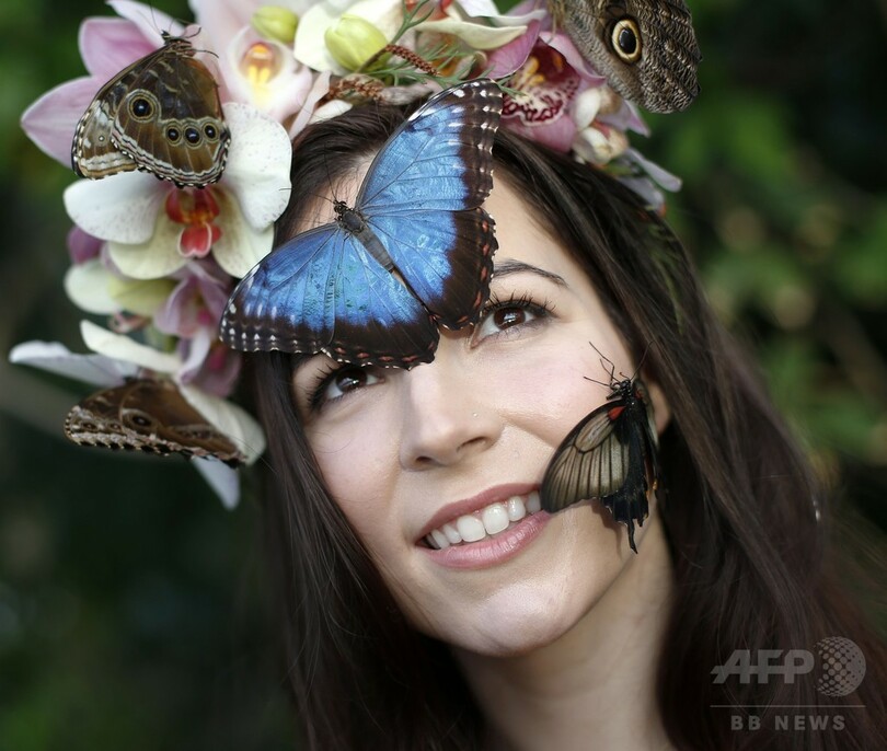 【1月17日 AFP】英イングランド(England)ウォーキング(Woking)近くのウィズリー・ガーデン(Garden Wisley)で14日、約6000匹ものチョウが温室に放たれるイベントが始まった。