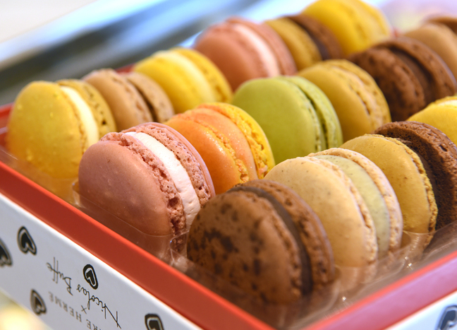 店に入ると、華やかなスイーツたちが目に入ってくるが、もちろんマカロンを忘れてはいけない。日本に進出した当時、「バニラ、チョコレート、コーヒー、フランボワーズくらいしかなかった」マカロンに創作の余地を見出し、以来さまざまな種類の味を開発し続けた。結果、その後の世のマカロンブームとも相まって、今やマカロン好きの人で「ピエール・エルメ」の名を知らぬ人はいないほど、ブランドの代名詞となった。