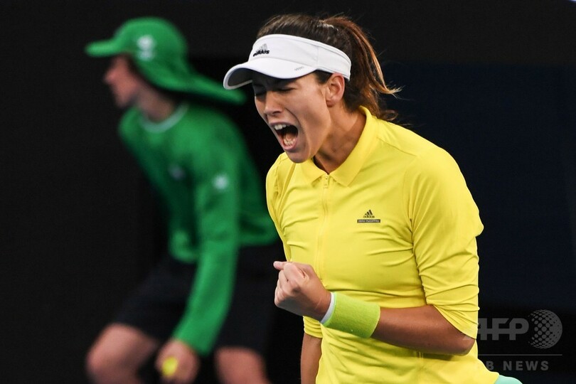 ムグルサは試合を振り返り、「彼女はとてもパワフルで、打球が強く手ごわかったです。今日は集中して好機を待ちました」とコメントした。(c)AFP