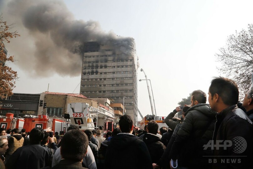 【1月19日 AFP】(更新)イランの首都テヘラン(Tehran)の繁華街にある同市で最も古い高層ビルが19日、火災発生後に崩壊した。内部にいた消防隊ががれきの下敷きになり、多数が死亡または行方不明となっている。