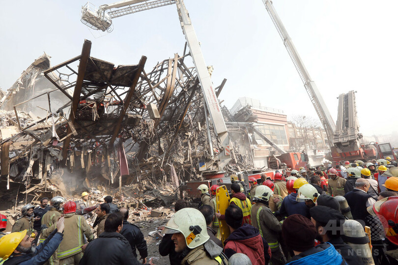 イラン首都の高層ビル、火災後に崩壊 消防隊員が多数犠牲に
