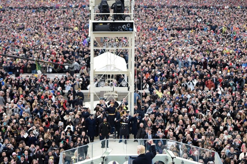 米首都ワシントン(Washington D.C.)の国立公園ナショナル・モール(National Mall)に集まった数十万人の観衆を前に、「われわれは共に、今後何年にもわたり、米国そして世界の道筋を決定していく」と表明。「この日からは、新たな未来像がこの国を統治する。この日からは、米国第一のみになる」と述べた。