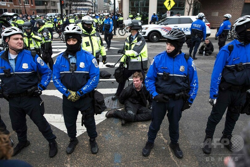 【1月21日 AFP】(写真追加)ドナルド・トランプ(Donald Trump)米新大統領の就任宣誓式が行われた首都ワシントン(Washington D.C.)で20日、新政権に抗議するデモ隊の一部が暴徒化し、警官隊と衝突した。
