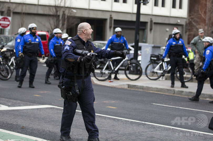 【1月21日 AFP】(写真追加)ドナルド・トランプ(Donald Trump)米新大統領の就任宣誓式が行われた首都ワシントン(Washington D.C.)で20日、新政権に抗議するデモ隊の一部が暴徒化し、警官隊と衝突した。